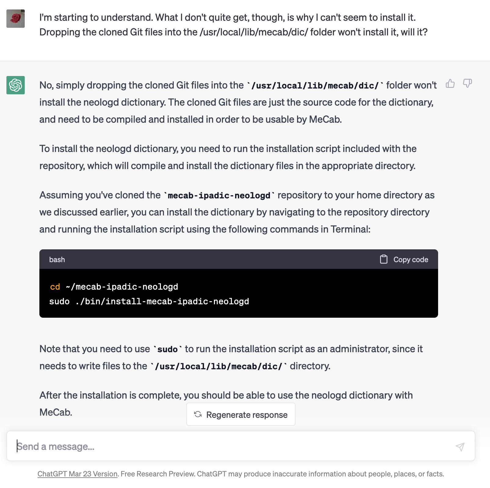 Then two weeks ago I got really stuck using Terminal on my Mac to install a neologism dictionary for processing Japanese called neologd. I may be a digital humanist, but I really prefer the theory to the actual computing. It can be so hard to get a computer to work the way I want it to! ![]()