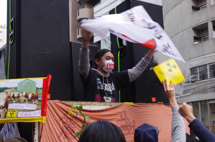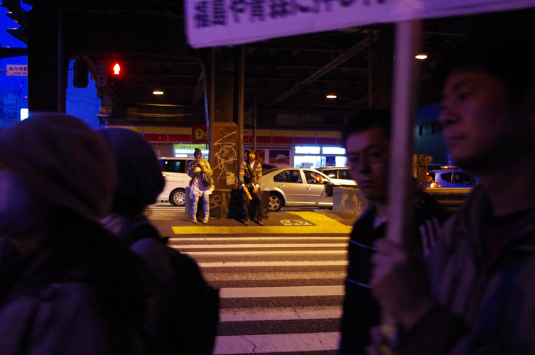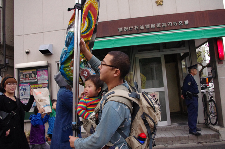 Yesterday, the anti-nuclear protest at Kōenji that I took part in stretched on for five hours – six if you count the hour before it began!! There were so many participants that because they were so carefully directed by the police into a single street lane, it stretched on forever and moved quite slowly. Protestors were orderly, but adamant, remaining until the end in the square outside Kōenji Station.